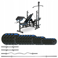 Kultūrizmo rinkinys 87,5 kg su suoliuku VIGOR-C by THUNDER su stipriu laužimo kaklu